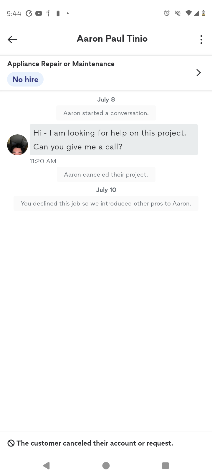 I got one guy on here that really likes to mess with my money gets me directly and then cancels either his account or the job but for some reason somehow this name and the same picture keep popping up in my leads and I reported it a couple times now cuz the number doesn't match the delete is fake and made up he's contacting from numerous towns around me including my town I just don't get it what's up with all these fake leads that you guys got is that your guys's scam to get rich off of people that are dying trying