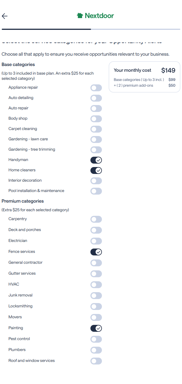 So it costs $149/mo. Today, we completed our first NextDoor Opportunities customer.