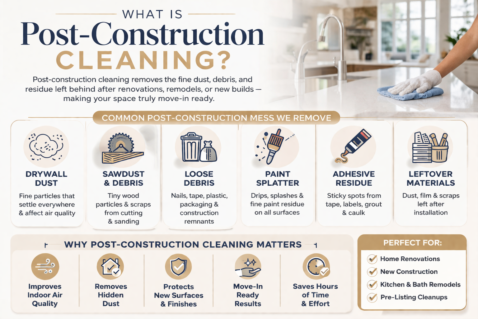 I feel like post-construction cleaning is one of those things clients don’t fully understand… until they see the dust everywhere.